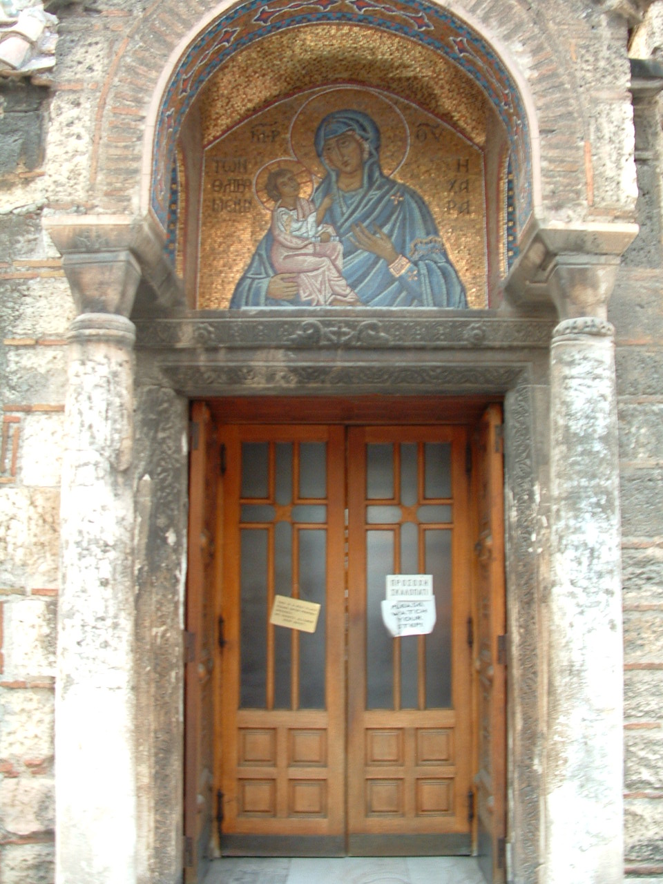 For many years, I have walked passed the tiny old church pictured above. It is located in the middle of the downtown Ermou shopping district of Athens. The church is always surrounded by people who like to sit on the ledge. I have sat there many times and one day I decided to go in to light a candle. I knew that it was an old church is but I did not know exactly how old. Recently I decided to take photographs of the church and to do some research on it. What I discovered surprised me the church named: ‘Panagia Kapnikarea‘ is dedicated to the Virgin Mary and it is one of the most important Byzantine churches in Athens. The church dates back to 1050 (11th century)! It was built on the ruins of an ancient temple either dedicated to the Goddess Athena or Demeter. Panagia Kapnikarea was almost destroyed after the Greek war of Independence of 1821, but the Bishop of Athens and Ludwig of Bavaria father of King Otto intervened and the church was saved. The mosaic at the entrance was made by Elli Voila in 1936, and it is quite beautiful up close. In addition, the Northern side of the church is dedicated to Saint Varvara.