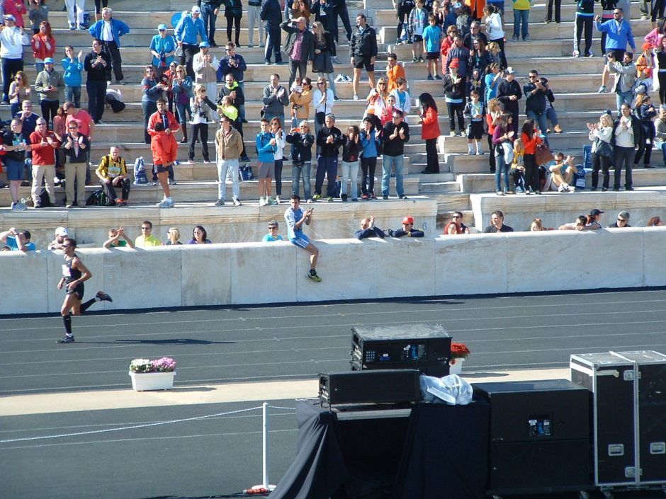 Runner enters the stadium