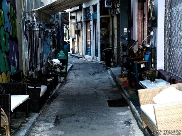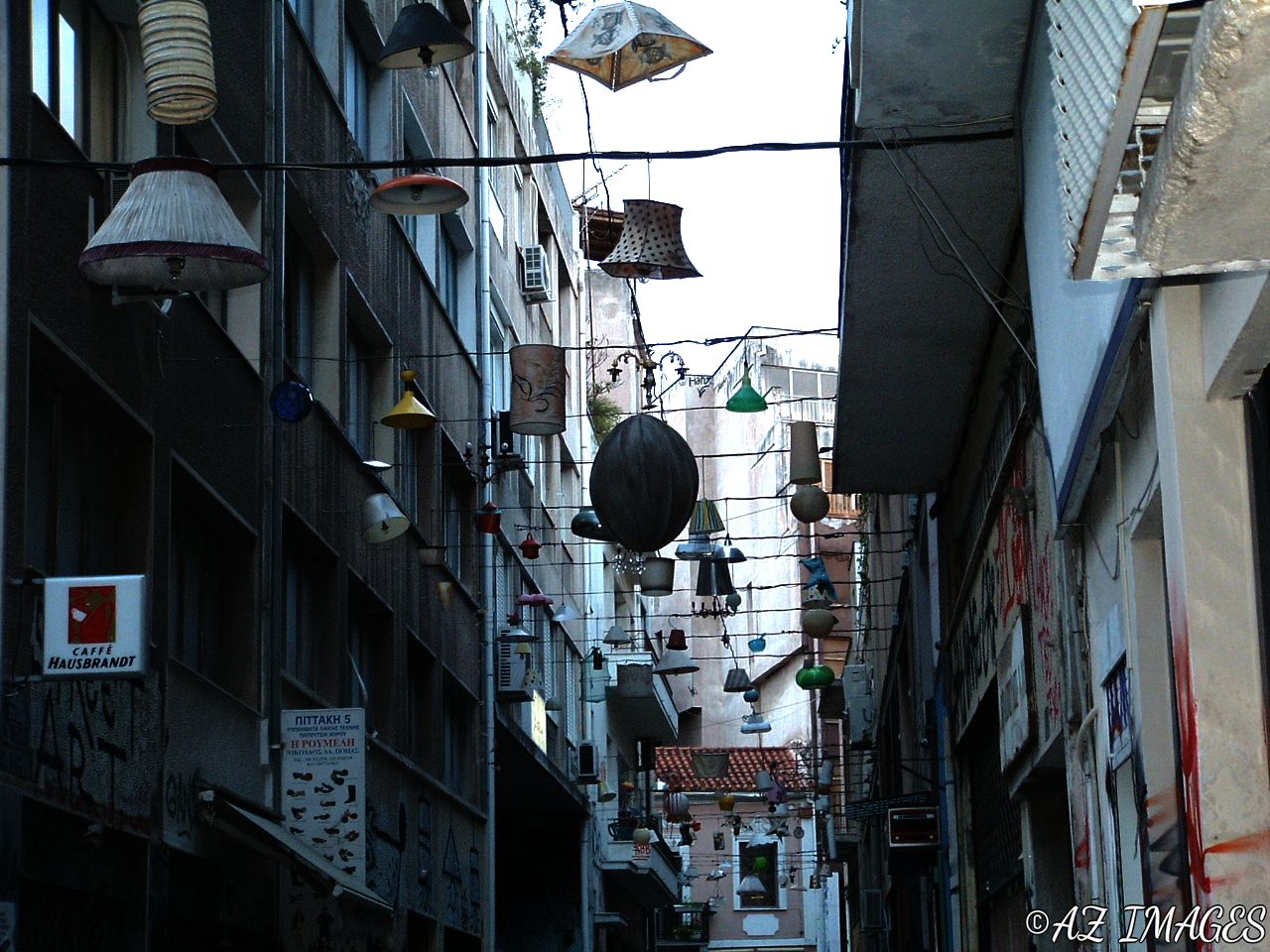 How can a creative person like myself not take a few photographs of the quirky and creative neighbourhood called ‘Psirri’. Psirri is located in the downtown area of ancient Athens and is a well-known ‘artsy’ area with a shady reputation. Many university students live there and they have made their presence known to visitors, an example would be the lamp shades and chandeliers hanging above the streets. They light the dark and narrow streets beautifully at night. These photographs are just a glimpse of the offbeat quality of Psirri that you won’t find in other areas of Athens.