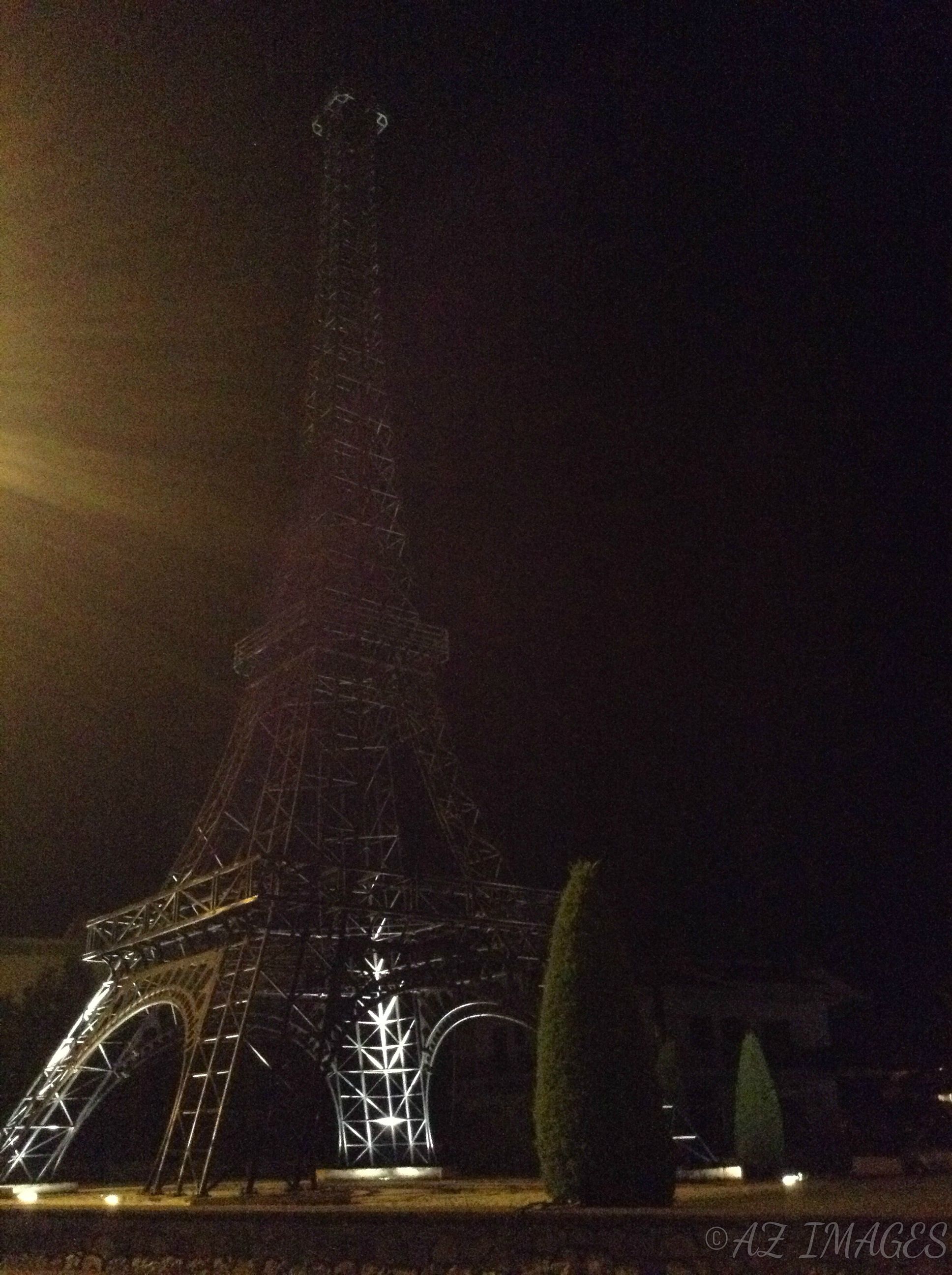 A nighttime shot of the Eifel tower at Filiatra.