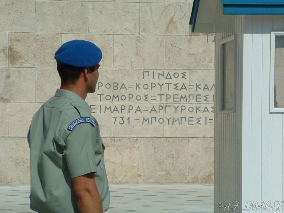 Soldier waiting to inspect and taunt the Evzones.