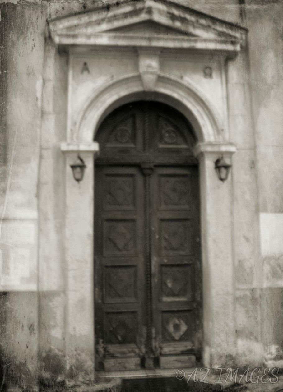 Black and with photograph of Orthodox Greek church in the downtown area of Plaka, Athens.