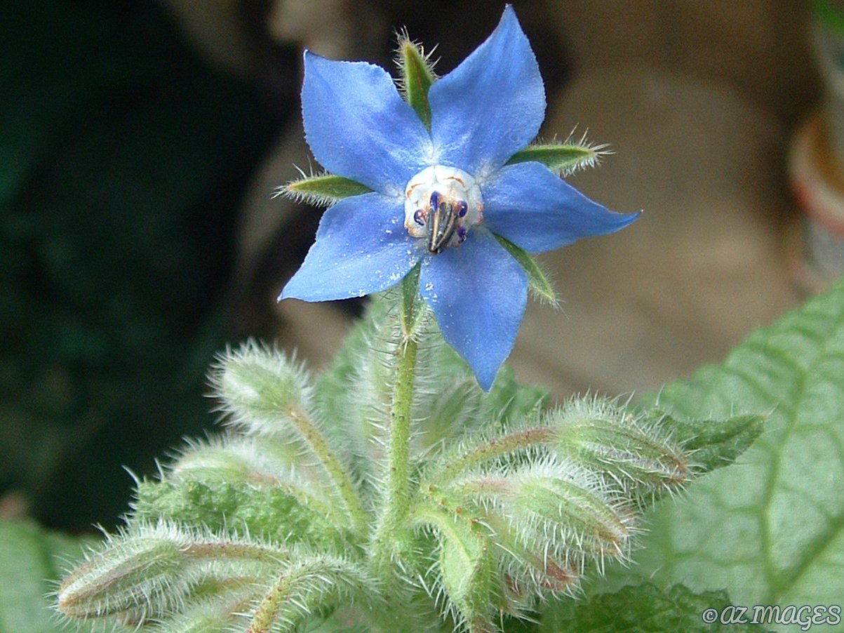The Borage plant, found in my garden and other gardens in the meditteranean, for the ancient Greeks, Romans and Celts and even in Medieval times symbolized courage and comfort. The blue flower, also called starflower, is tiny and very hairy, its leaves can be used in salads and the seeds are used to make borage seed oil for many ailments. The blue flower, when dried, is used to make tea as well.