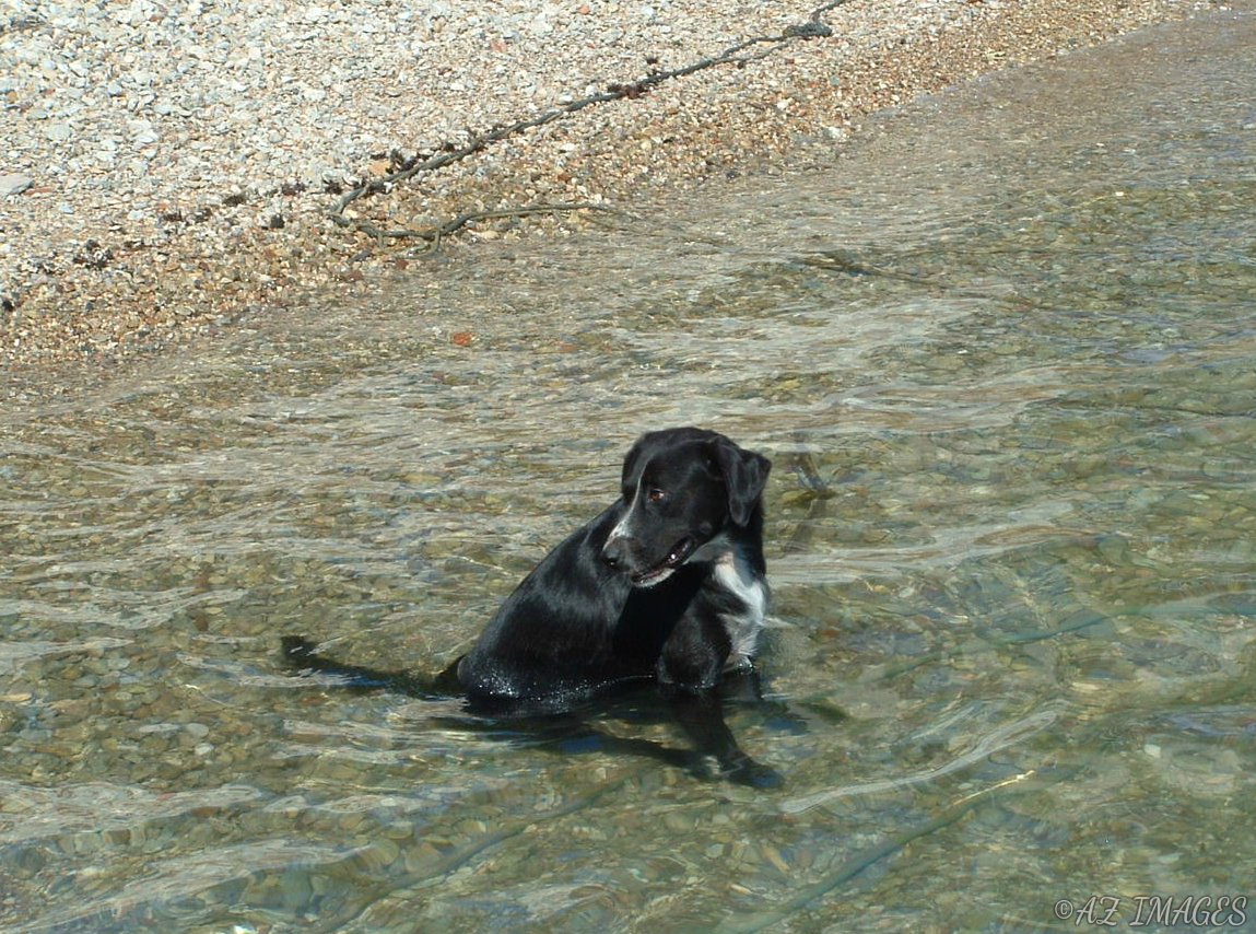 Cooling Off/ Δροσιζομαι This black friendly stray dog followed me all the way to the shore and to my surprise he decided to take a little dip. It was a really hot day so I can’t blame him!