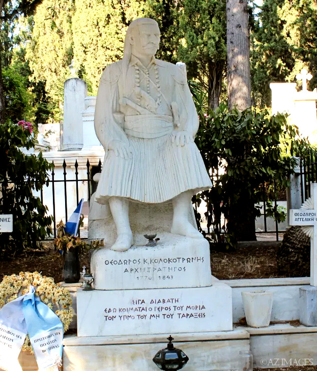 The grave of Greek revolutionary leader Theodoros Kolokotronis at the First Cemetery in Athens.