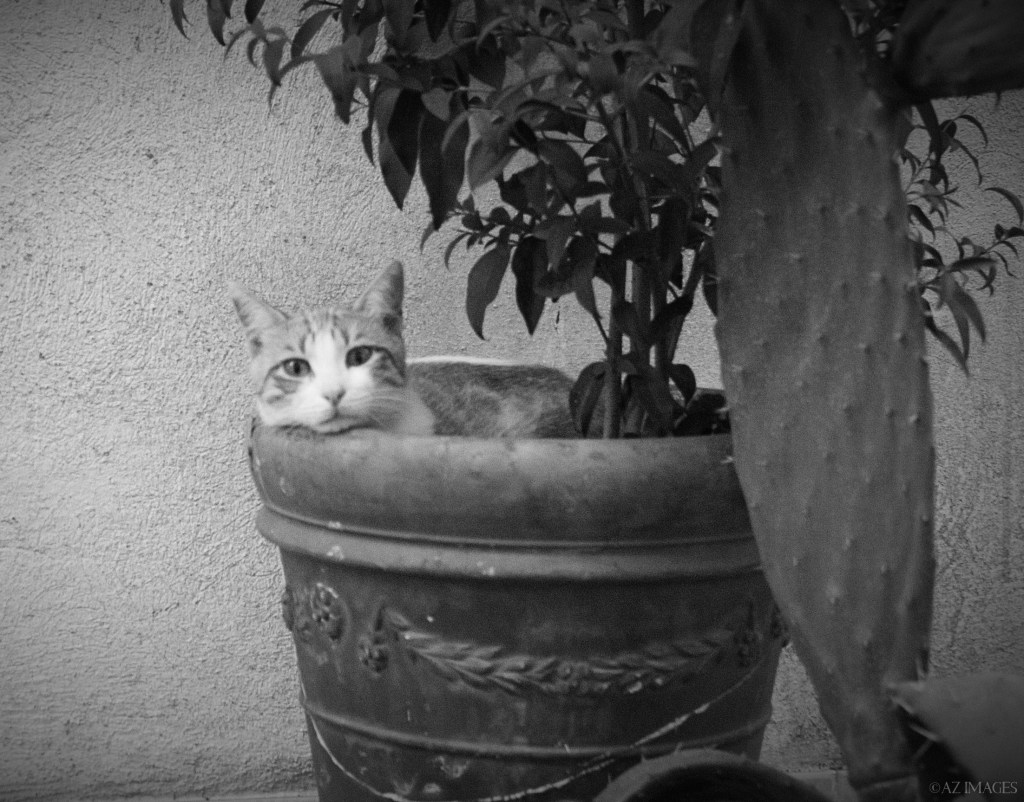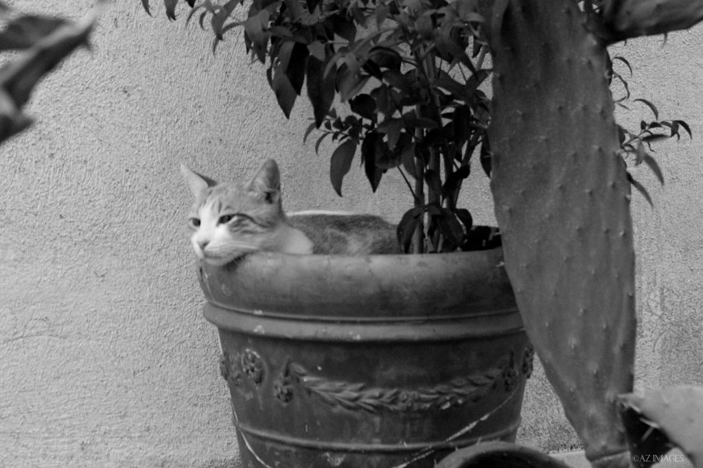 Here are a few pictures of a stray cat named Lucas who likes to sleep in the clay pot outside.