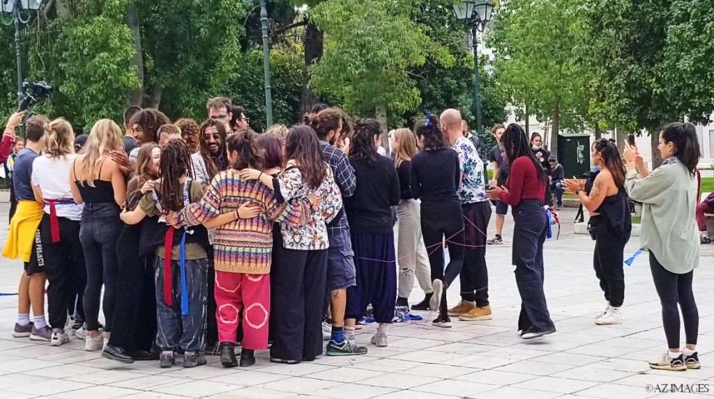 As I was walking through Syndagma square in downtown Athens, I came across an unusual scene. A group of youths were in the midst of a group hug and making strange noises similar to wolves. A rare thing to see especially in this day and age. They all looked like modern day hipppes. Someone standing next to me asked them what this was all about, and one of the girls said ‘inclusion’ with the most serene, and truly geniune smile I have seen in years.