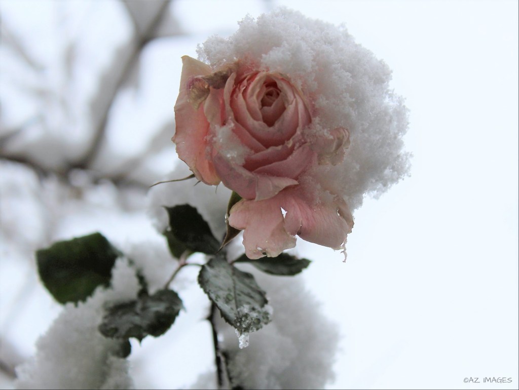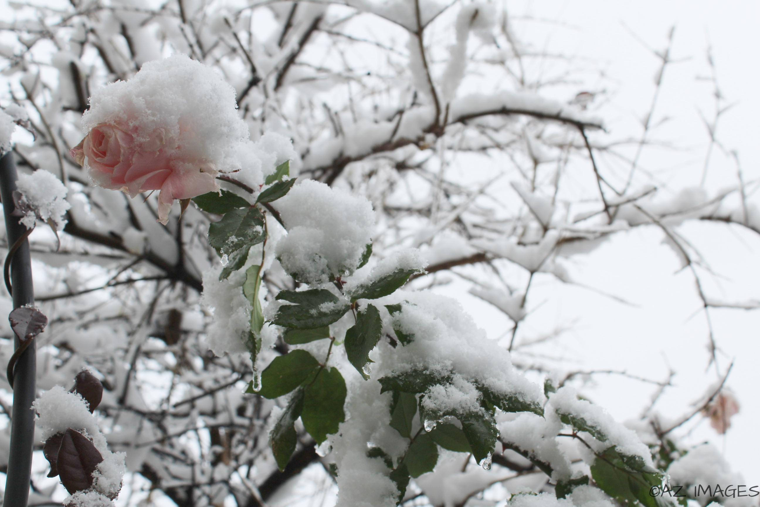 The sudden snowstorm caught my garden by surprise. Luckily the snow melted the next day when the sun came out because aloe veras, cacti, and citrus trees cannot deal with frost.