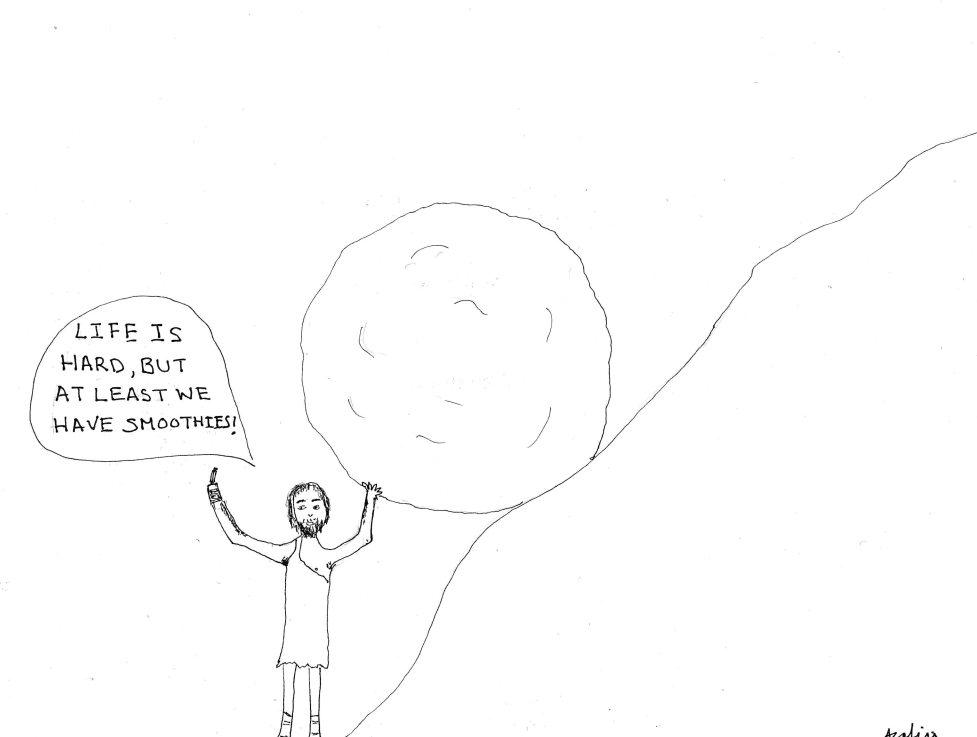 I feel that most peoples lives are ‘sisyphean’. We all have a boulder that we roll up a hill only for it to come down again. For most people the struggle is never ending. Some people have it better, of course, but they are always dealing with something, and others have it much, much worse.