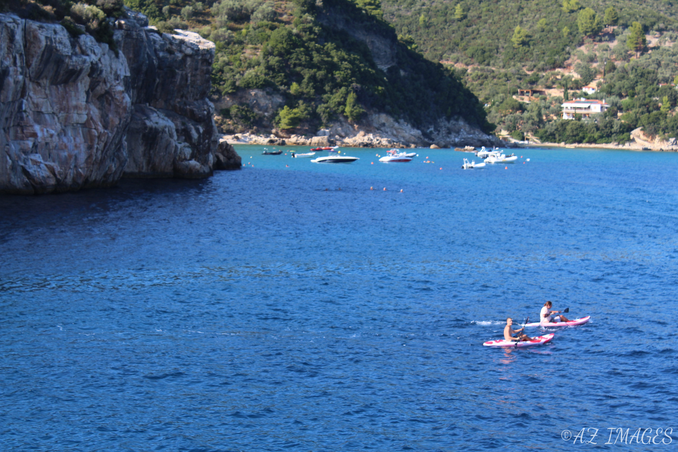 Στην κρουαζιέρα στη Σκιάθο είδαμε πολλά κρυμμένα πετράδια. Κρυμμένους παραλιακούς κολπίσκους που είναι προσβάσιμοι μόνο με βάρκα, καθώς και σπηλιές, και μερικά όμορφα σπίτια στην κορυφή των βράχων.