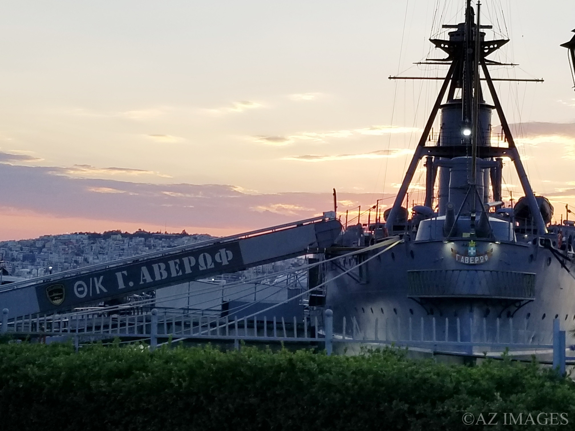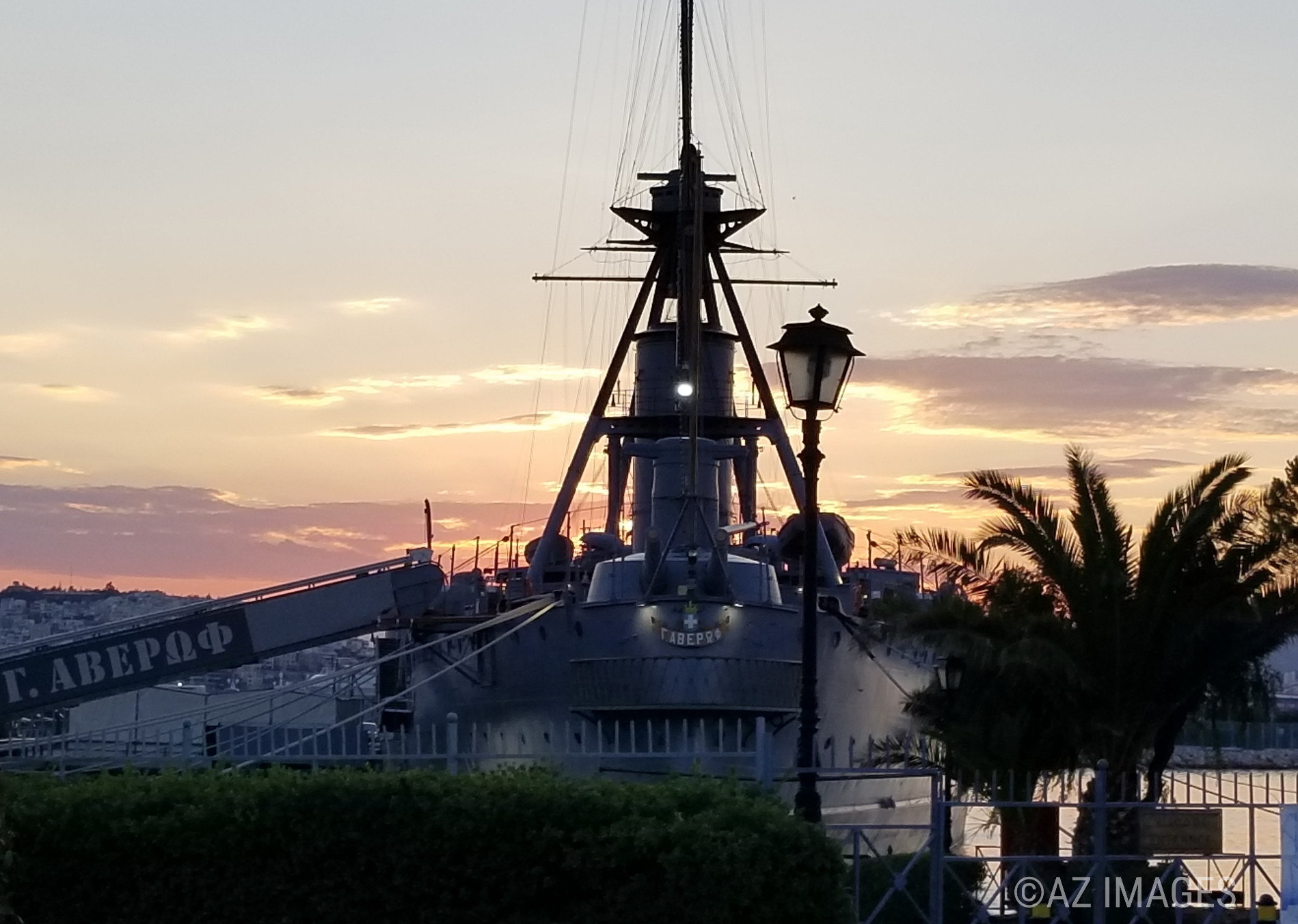 The Greek battleship ‘Averof’ is docked at the bay of Palaio Faliro. It has a long and extensive history.