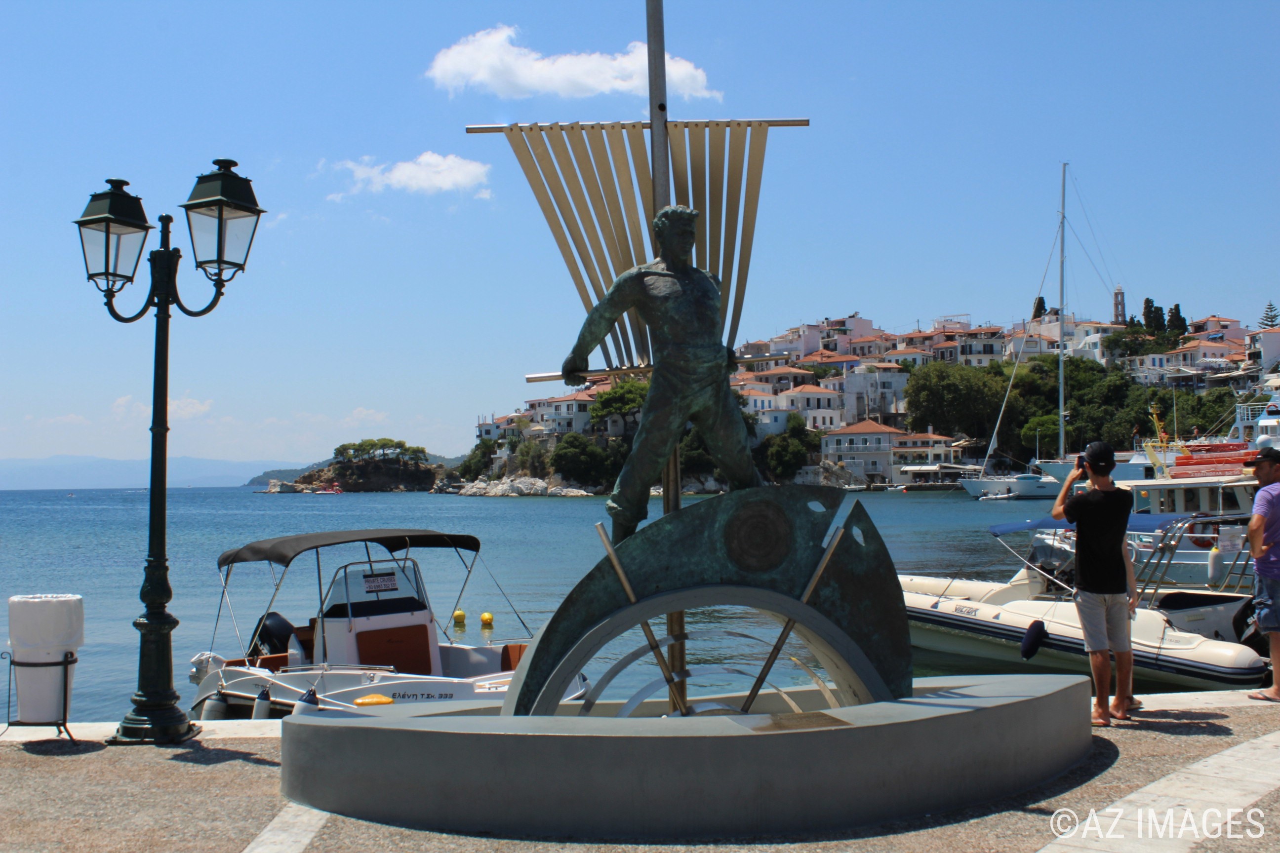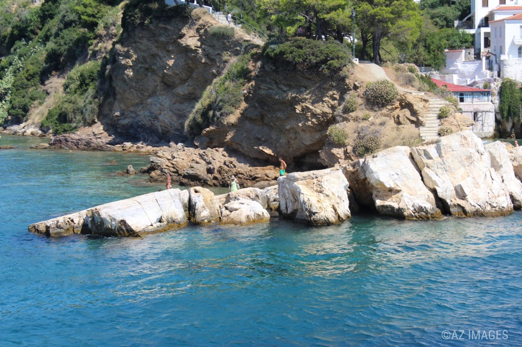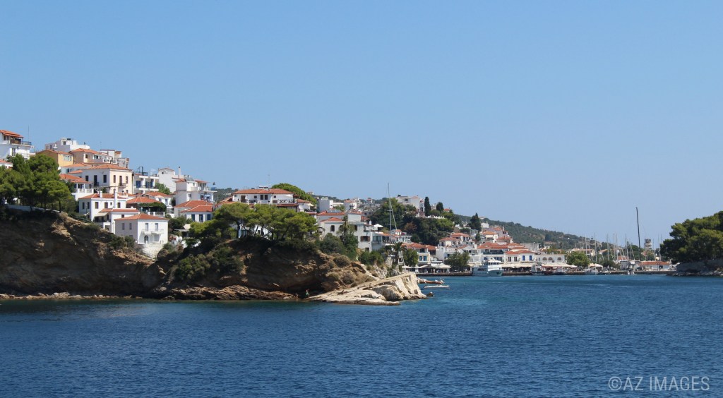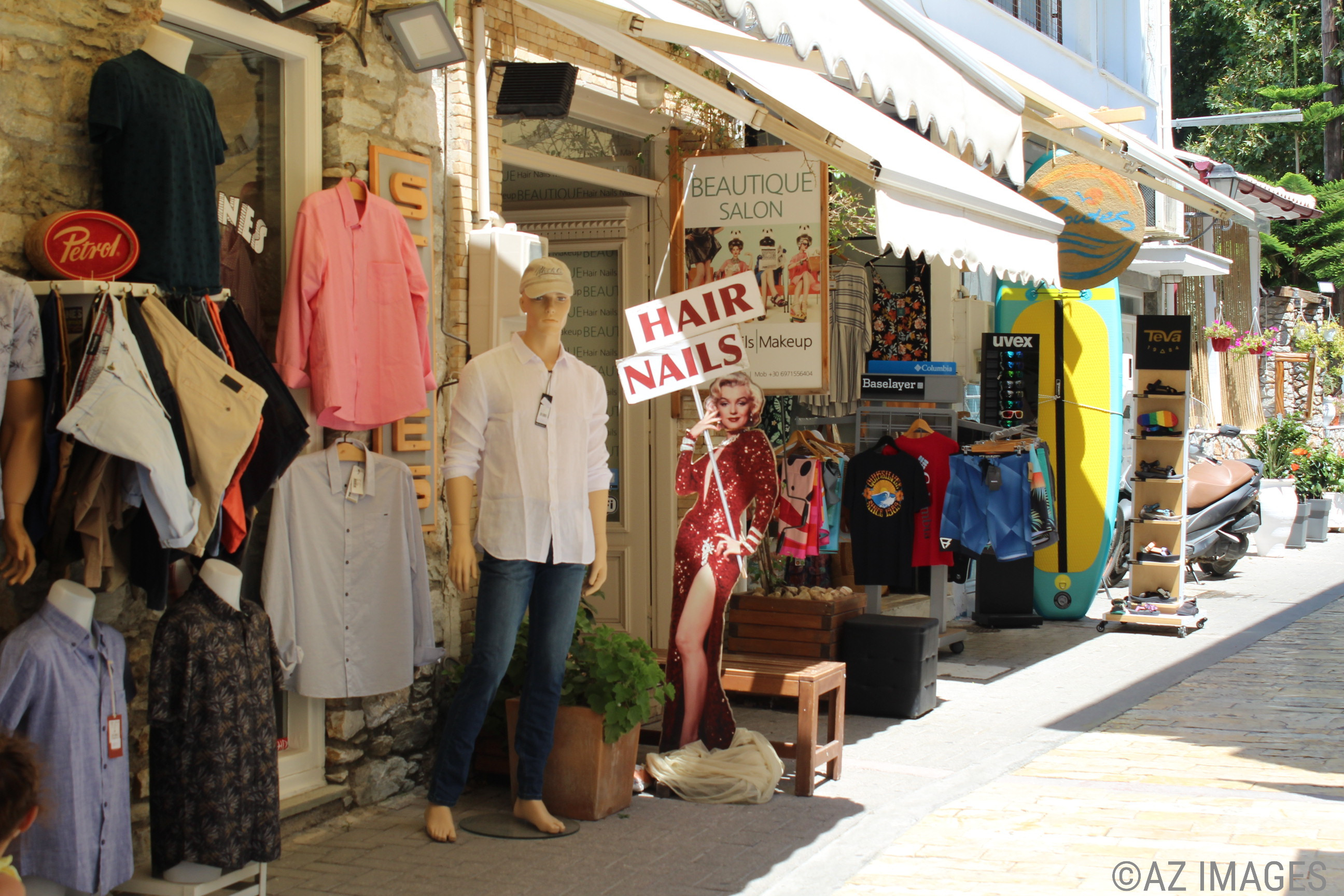 Skiathos is a huge and beautiful cosmopolitan island in the Northern Sporades. It is has nice lush green trees which I love as I don’t like dry, arid islands and other places. The town of skiathos has nice, clean and newly renovated shops. Many were so unique and creative. It was bustling with people that day as Greece has had a huge influx of tourists this year; about a million each week!