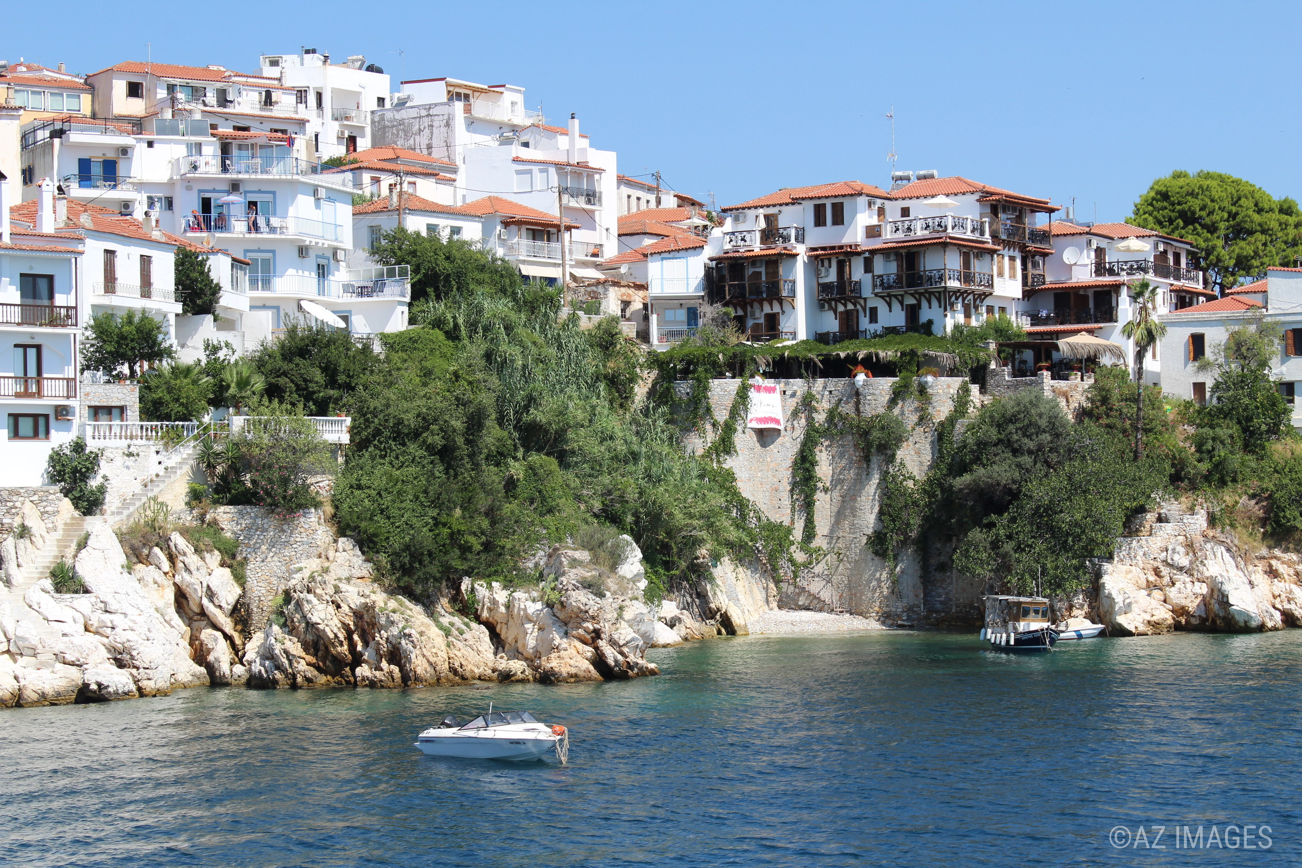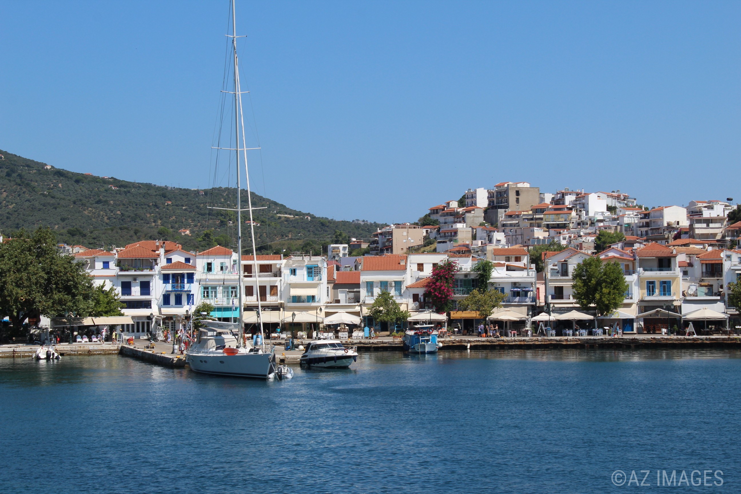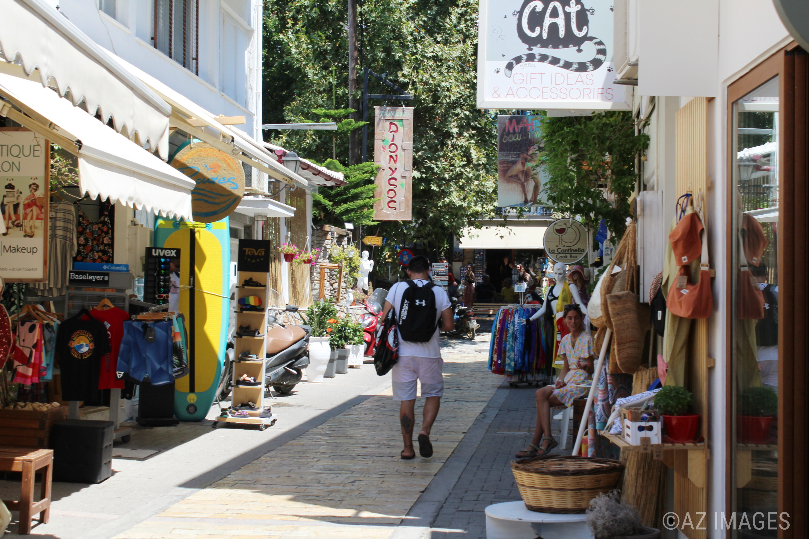 Η Σκιάθος είναι ένα τεράστιο και όμορφο κοσμοπολίτικο νησί στις Βόρειες Σποράδες. Έχει ωραία καταπράσινα δέντρα που μου αρέσουν καθώς δεν μου αρέσουν τα ξερά, άνυδρα νησιά και άλλα μέρη. Η πόλη της Σκιάθου έχει ωραία, καθαρά και πρόσφατα ανακαινισμένα καταστήματα. Πολλά ήταν τόσο μοναδικά και δημιουργικά. Ήταν πολύ κόσμος εκείνη την ημέρα, καθώς η Ελλάδα είχε μια τεράστια εισροή τουριστών φέτος. περίπου ένα εκατομμύριο κάθε εβδομάδα!