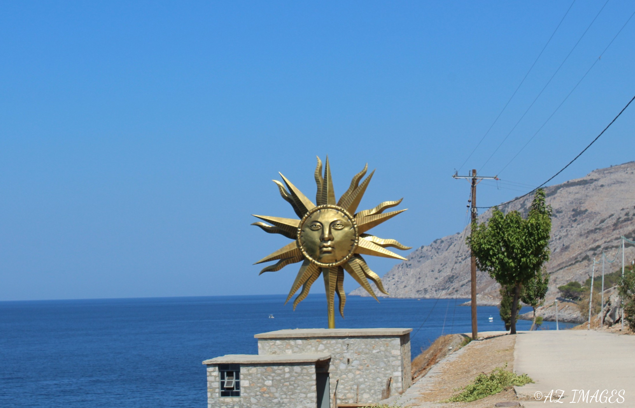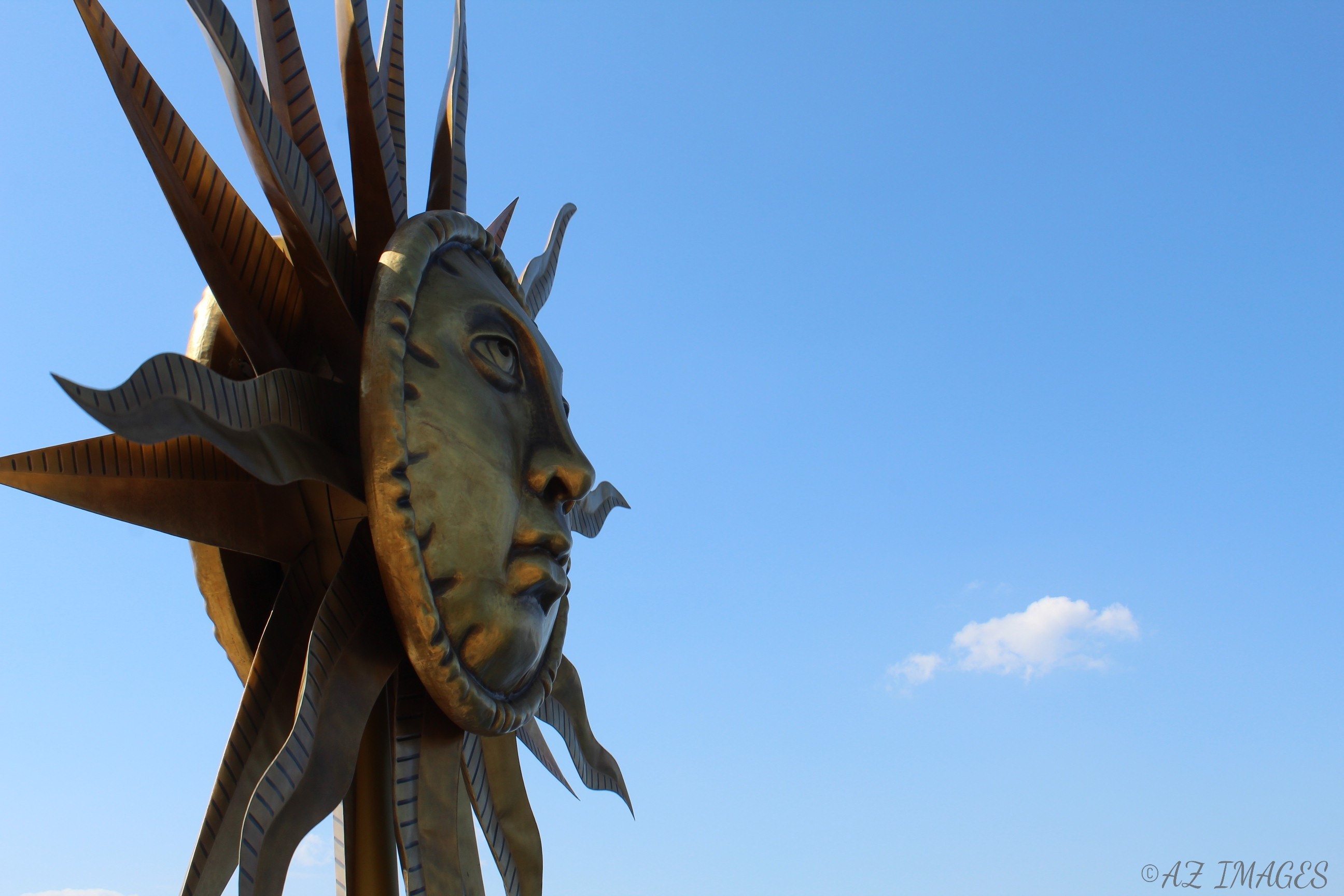 Helios Sculpture While at Hydra I was lucky enough to view and photograph Amercian artist Jeff Koons’ sun scultpure. It is an impressive sculpture that fits into the scenery of the island. It is a two-faced sun and is quite big. the sun rays spin slowly around. Share this: Click to share on X (Opens in new window) X Click to share on Facebook (Opens in new window) Facebook Click to share on Reddit (Opens in new window) Reddit Click to share on Tumblr (Opens in new window) Tumblr Click to share on Pinterest (Opens in new window) Pinterest Like Loading... Related