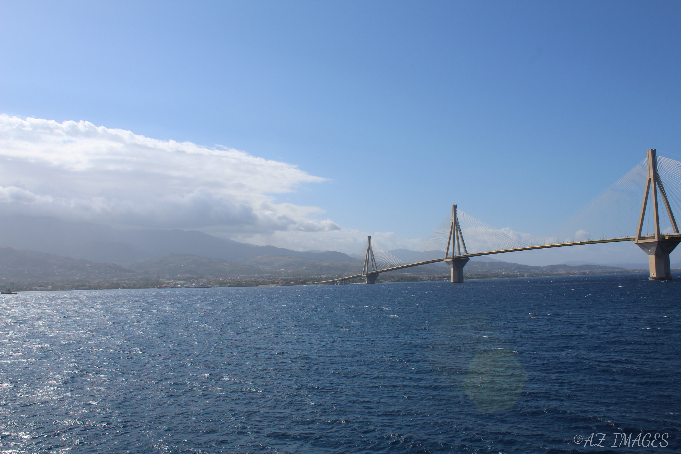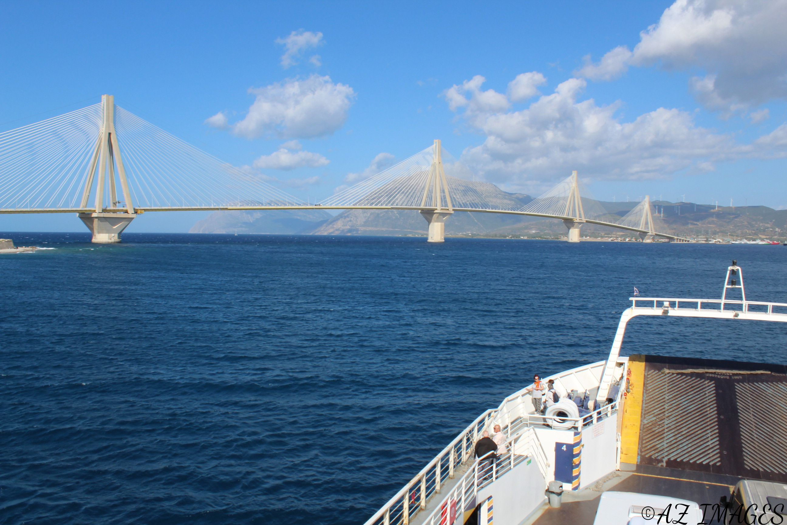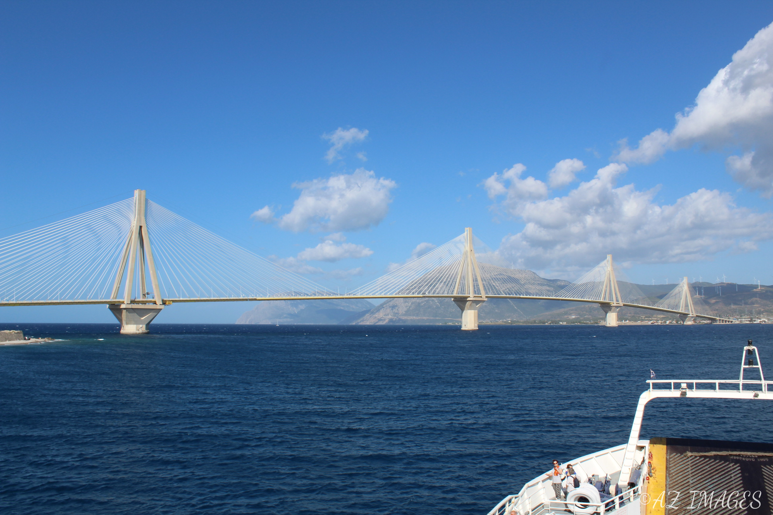 The view of the RIo-antirio (also called Charilaos Trikoupis) bridge from aboard a ferry boat are stunning. The remarkable RIo-Antirio bridge is an impressive modern wonder. It was completed the day before the Olympic games in Athens on the 12th of August 2004. It is one of the world’s longest multi-span cable-stayed bridges and longest of the fully suspended type. It crosses the Gulf of Corinth near Patras, linking the town of Rio on the Peloponnese peninsula to Antirrio on mainland Greece by road.