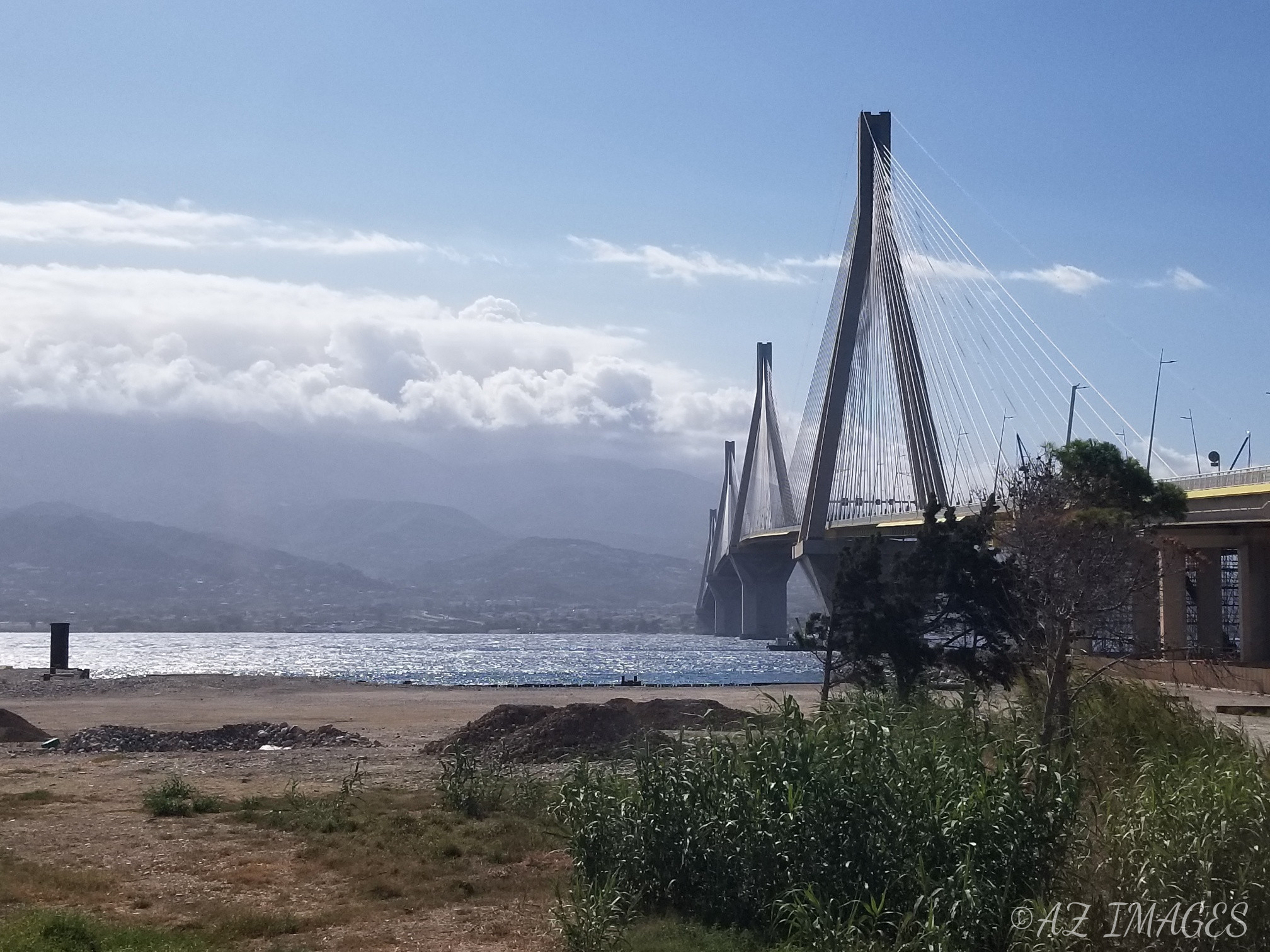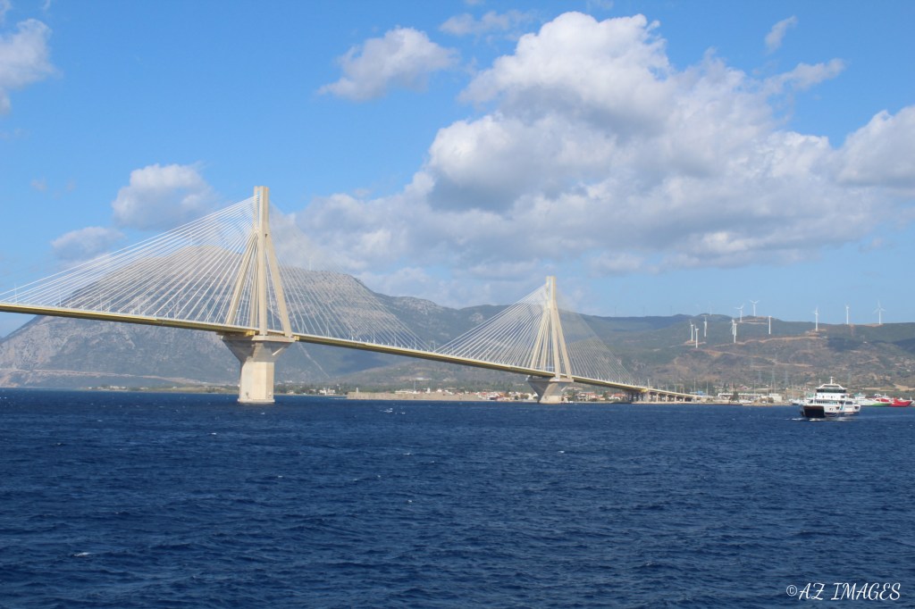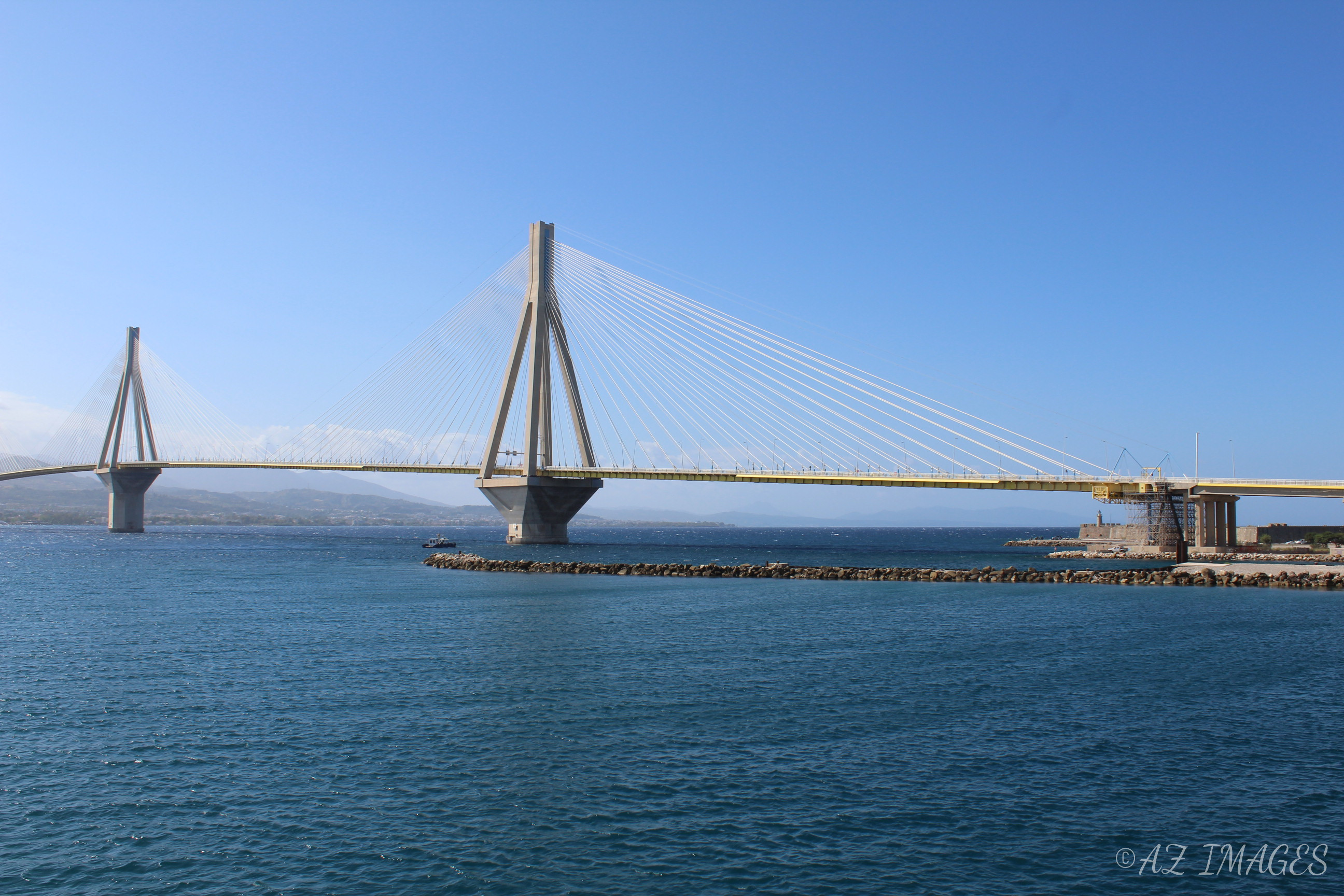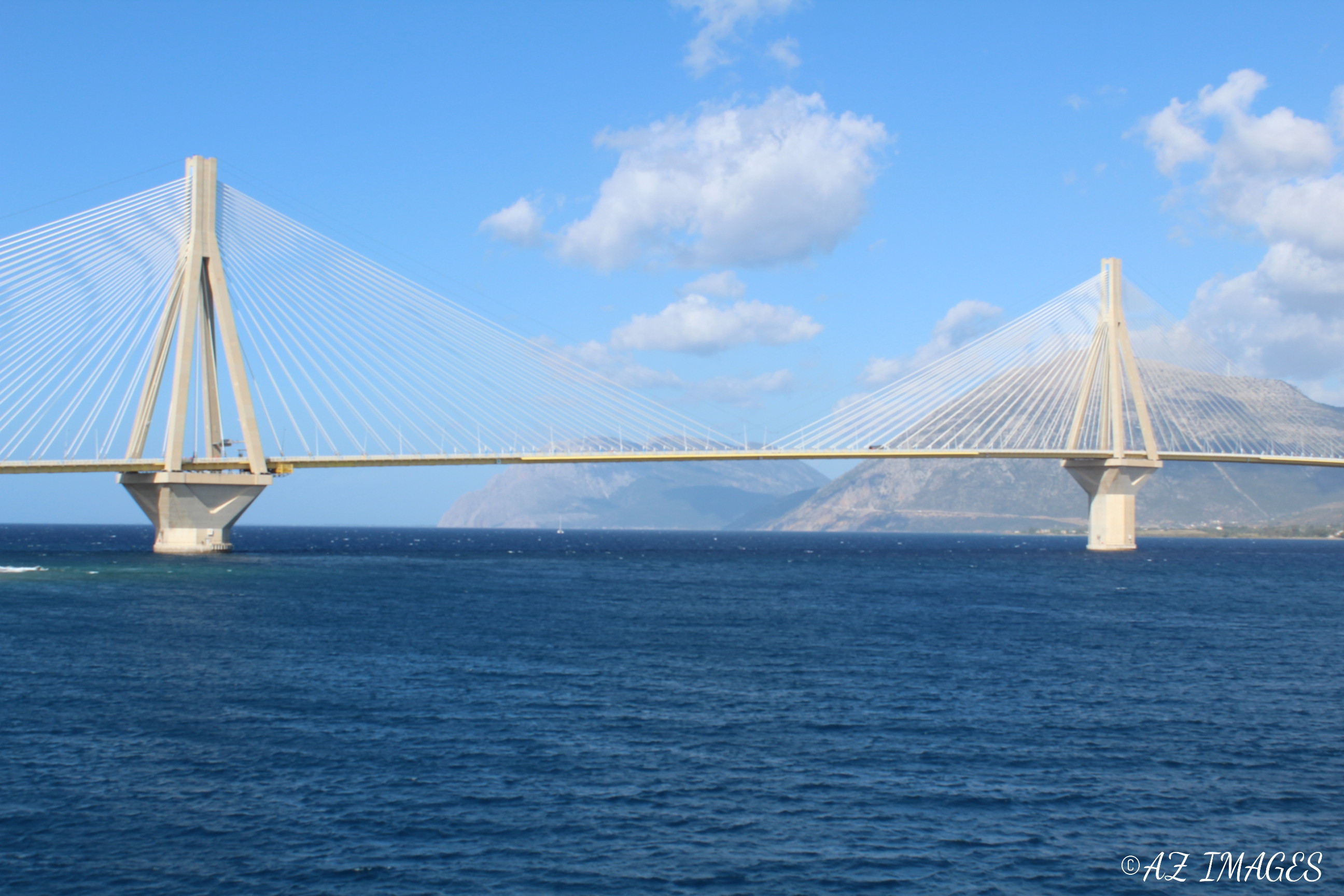 The view of the RIo-antirio (also called Charilaos Trikoupis) bridge from aboard a ferry boat are stunning. The remarkable RIo-Antirio bridge is an impressive modern wonder. It was completed the day before the Olympic games in Athens on the 12th of August 2004. It is one of the world’s longest multi-span cable-stayed bridges and longest of the fully suspended type. It crosses the Gulf of Corinth near Patras, linking the town of Rio on the Peloponnese peninsula to Antirrio on mainland Greece by road.