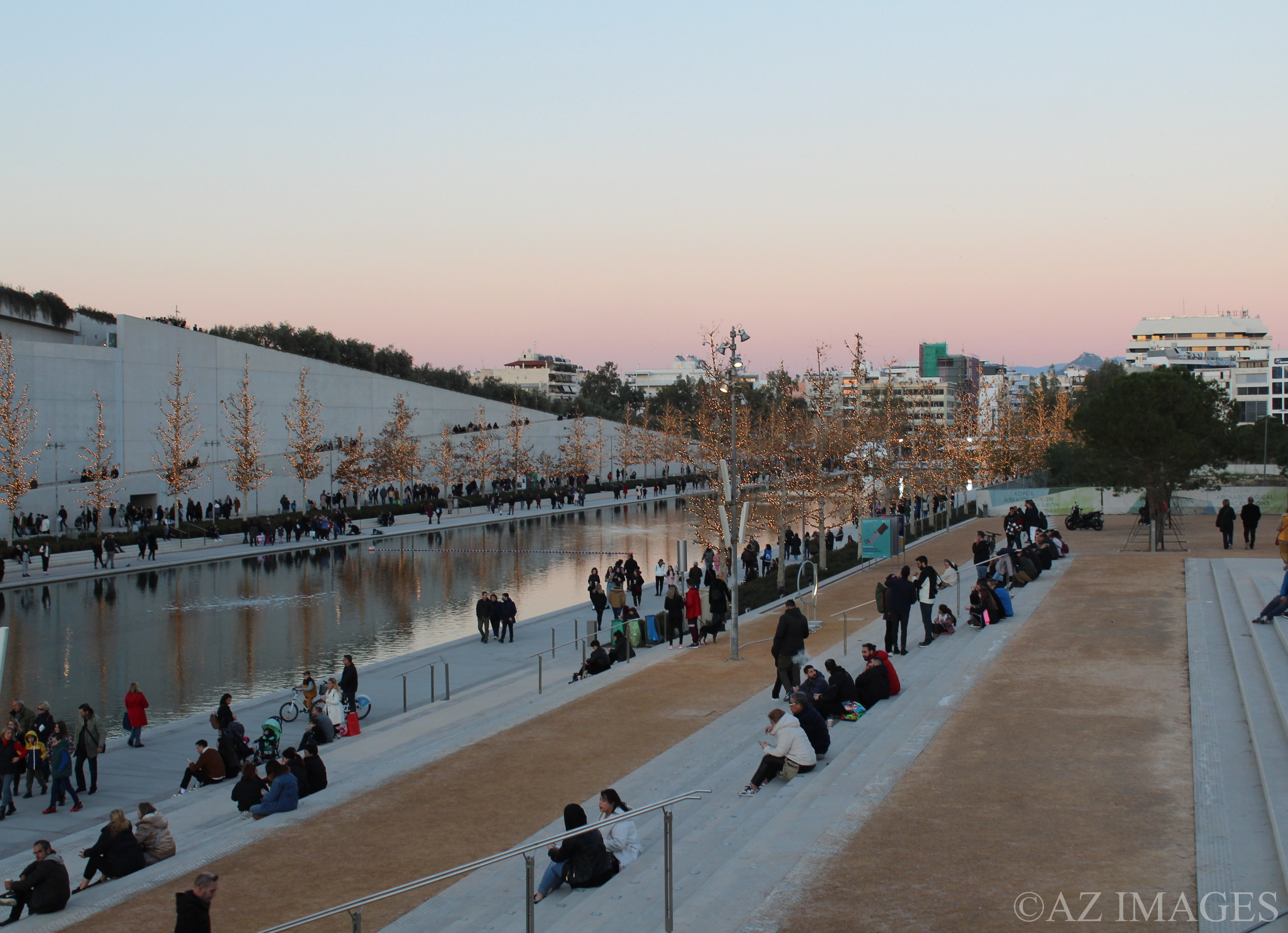 My first batch of of photographs of the ‘Stavros Niarchos Culture Center’ (SNFCC). I took a lot of photographs in the day time and then a few more after the sunset. It was the day after Christmas and it was crowded with people. Parents with their kids enjoying their activities in the park. Some live music and the dancing fountains. It is a good place to get some exercise as the property is huge. When you are there you want to explore the whole place, so good thing I had my walking shoes on 😉