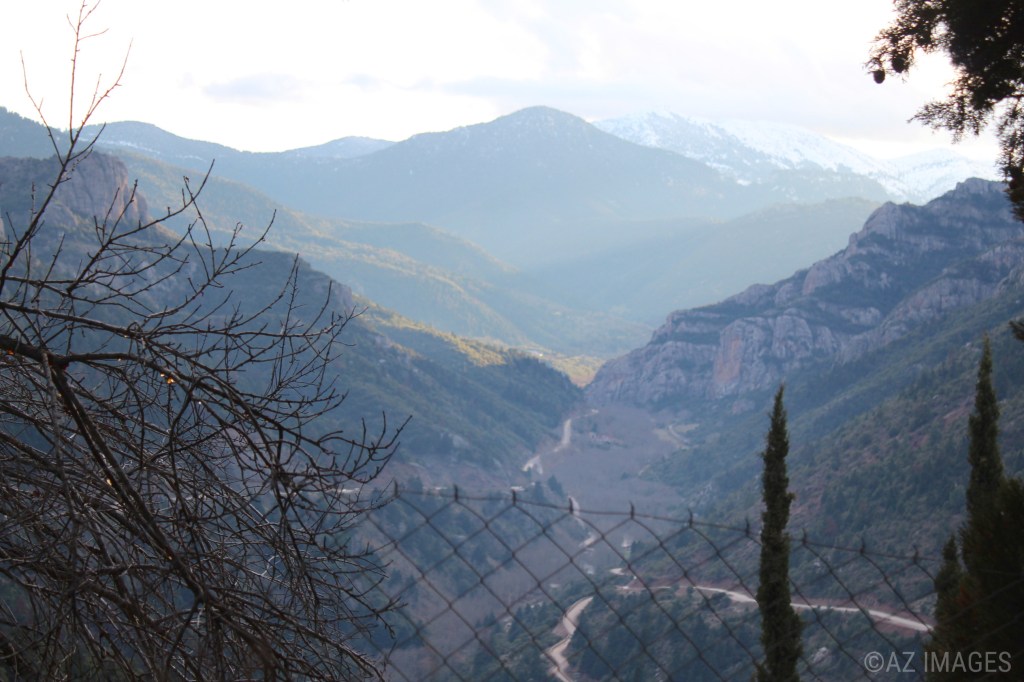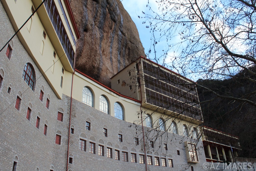 Another stop at Kalavryta was at the oldest monastery in Greece, the Mega Spilaio (Mega Cave). It is located 10 km from the town of Kalavryta. The landscape is beautiful, and it was built on the slope of Mount Helmos in 362 A.D by monks and brothers Simeon and Theodoros who were natives of Thessaloniki. Each of them had a vision, and they were ordered to travel from Jerusalem to Achaia (where Kalavryta is located) and find the icon of the Virgin Mary.