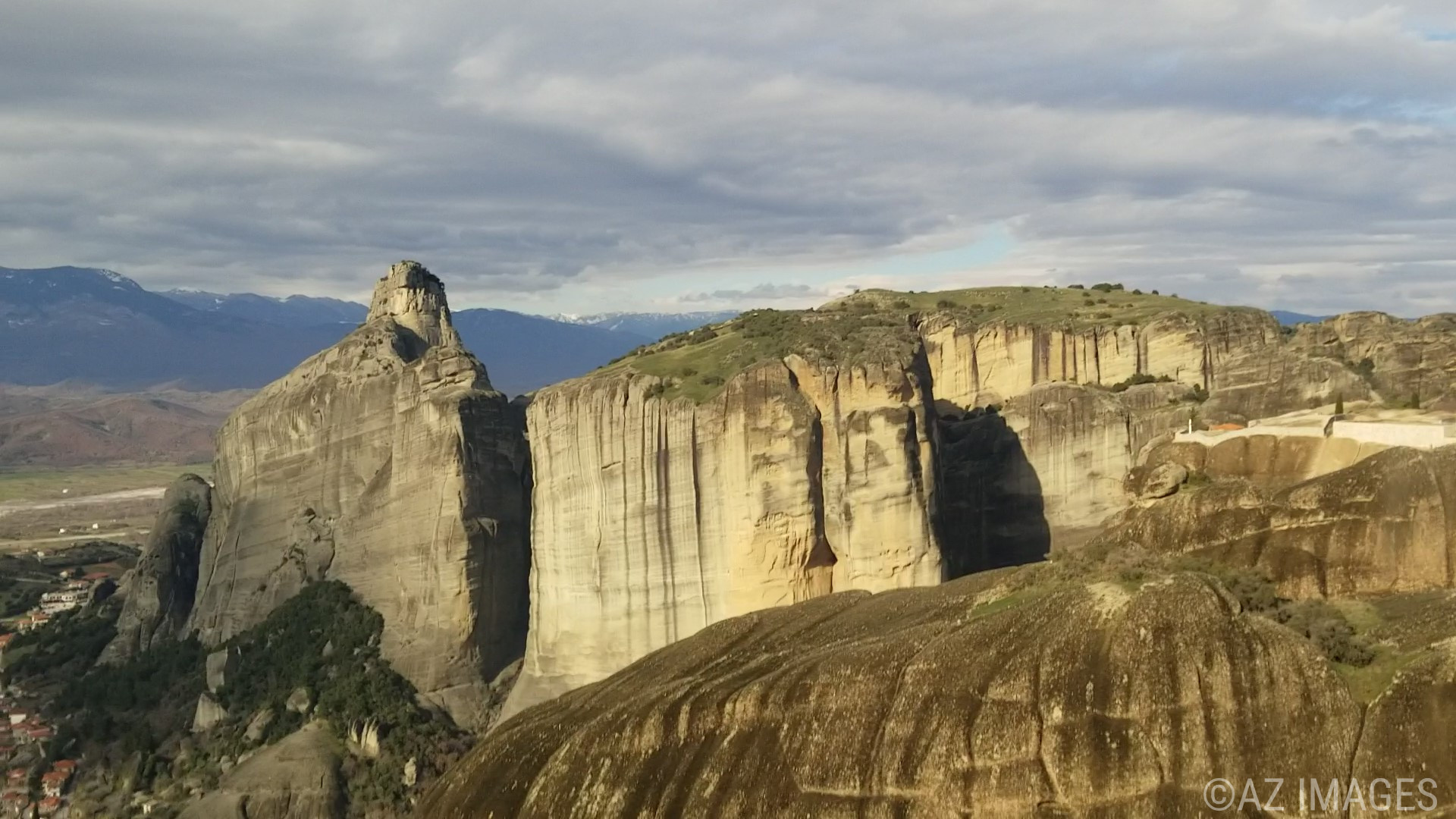 The probable account for the formation of the rocks at meteora is that it is the result of a cone-shaped delta, that is a mass of rocks, sand and sediment carried by a river and deposited in the ancient lake of Thessaly. Twenty-five million years ago this river entered the sea near present-day Kalambaka when the water mass found an outlet in the Aegean sea, following the separation of Mount Olympus and Mount Ossa the cone-shaped delta that had accumulated was eroded by earthquakes, wind and heavy rainfall and split to form hills and rocks of different shapes.