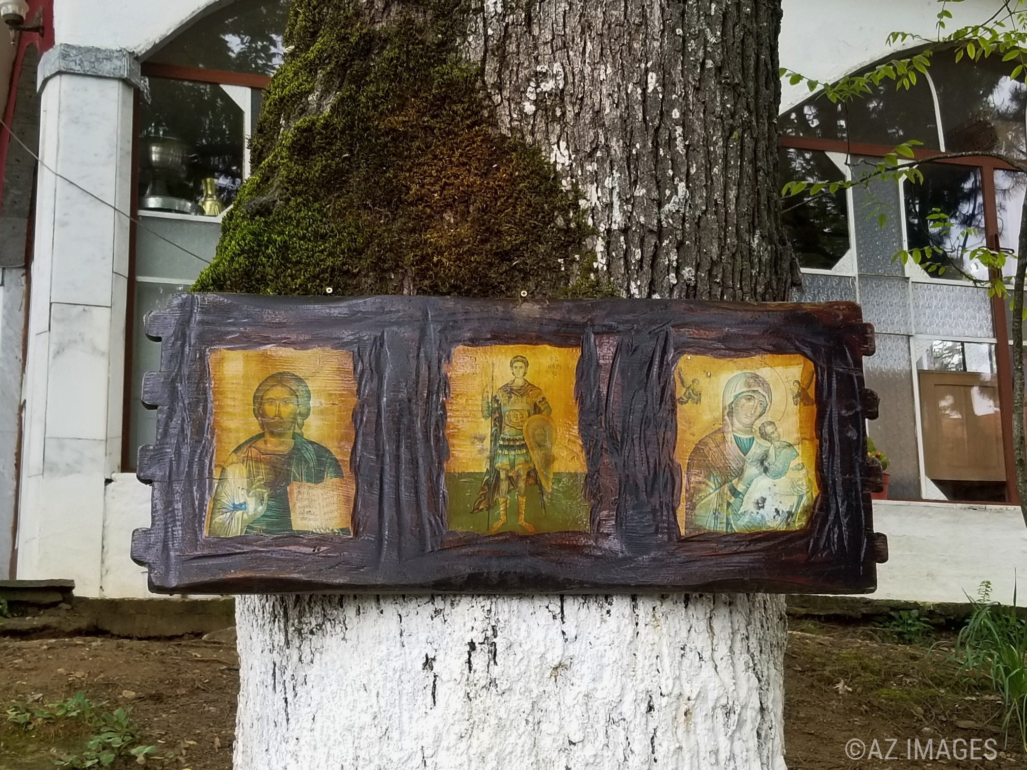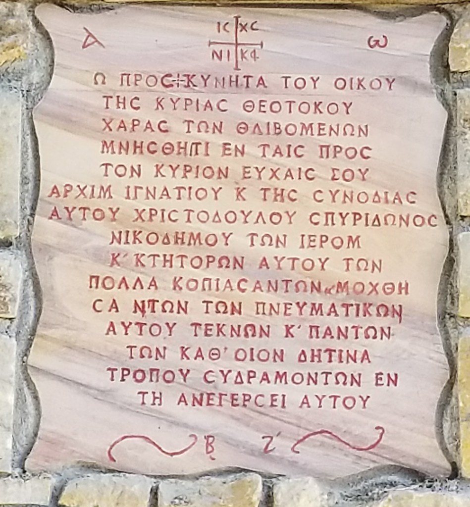 The monastery ‘Mother Mary the Joy of the Sad people’ is located in Palaiohori, Halkidiki in Northern Greece. It is not an old monastery as it was built in 1999. Is a monastery for men. People who are in difficult or desperate situations may pray to to Her. There is a special prayer that is read. For example, a mother who is struggling with her drug addicted son may pray to Her for help.