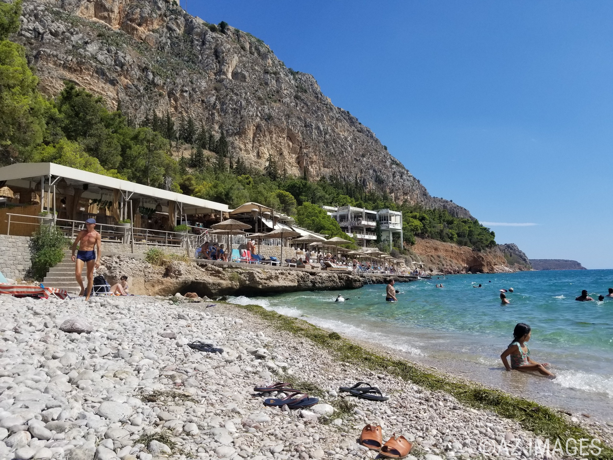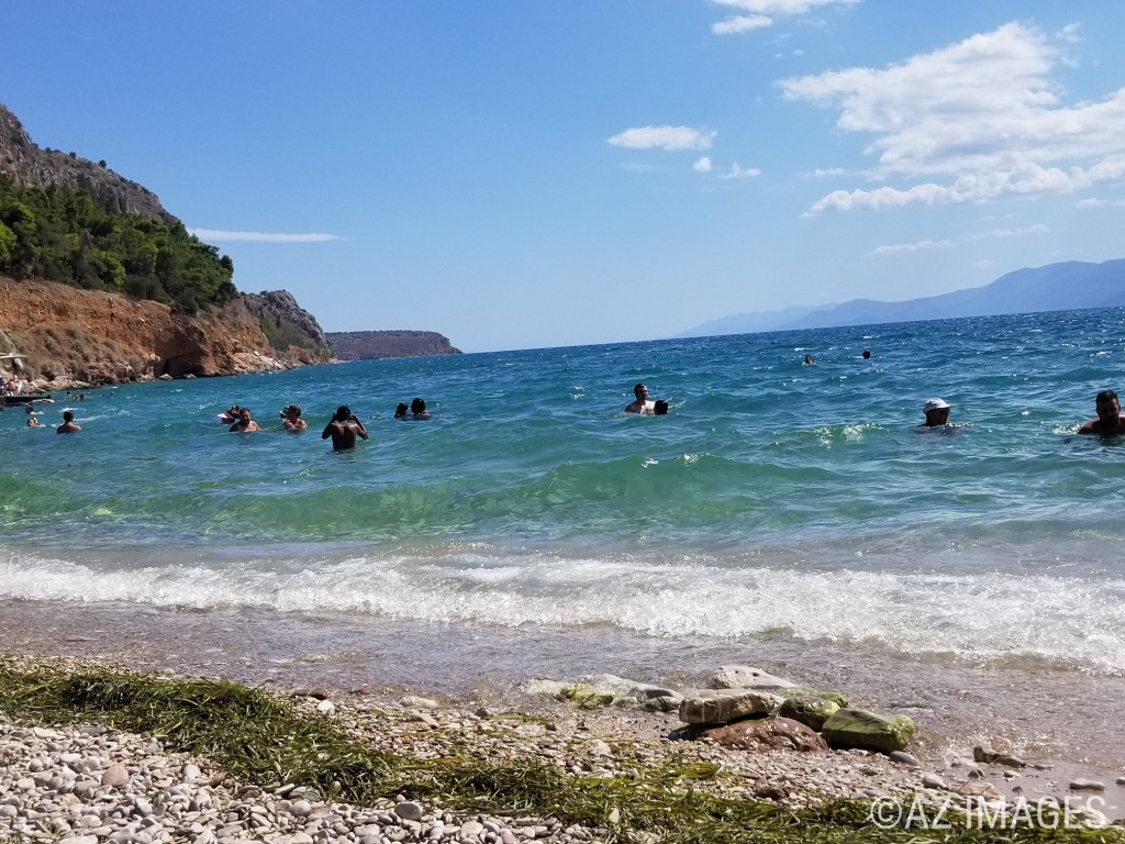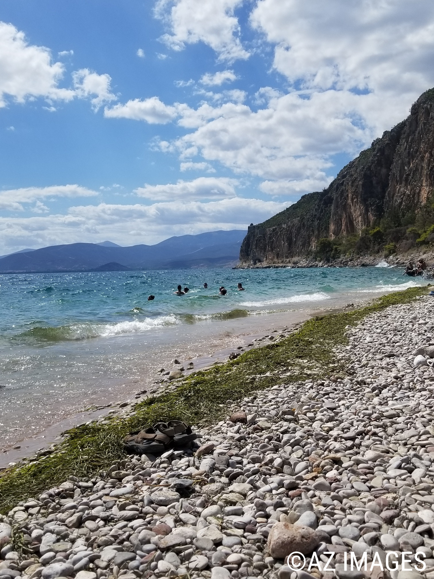 After a day of strolling through the cobble stone streets of Nafplio a dip in cool waters was a must. Nearby Nafplio is ‘Arvanitia beach’. It is a short, small beach with lots of rocks and fish that love to bite swimmers feet. Plenty of screams were heard that day. At least it wasn’t a shark. Luckily I got out before the waters got choppy and too rough for even the best swimmers to swim in.
