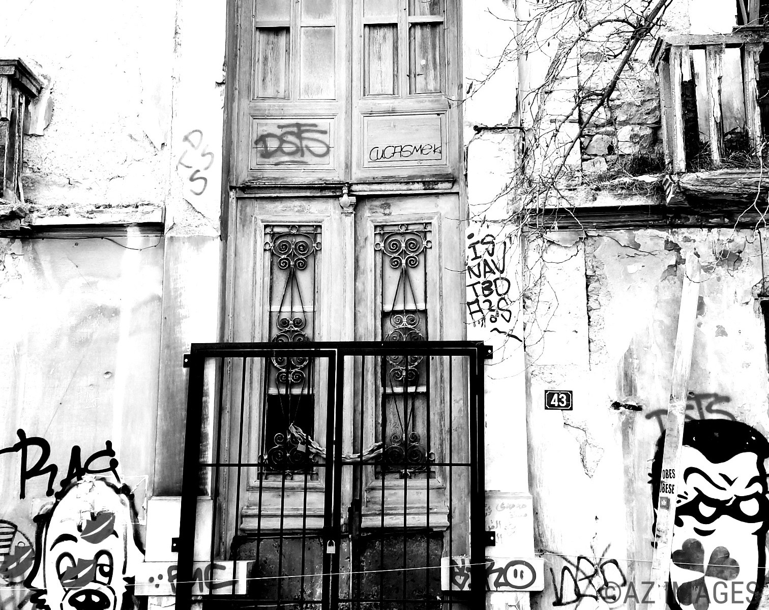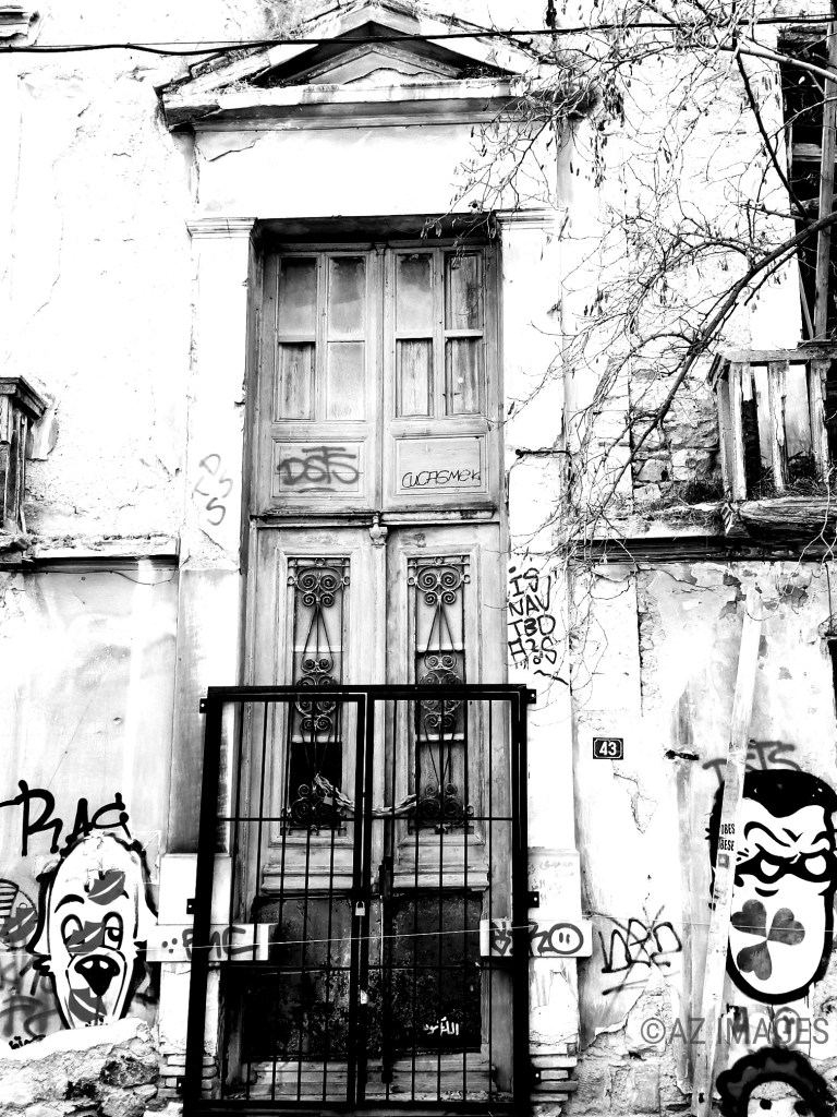 What must have been in its hey-day a beautiful neo-classical building on a corner of a neighbourhood downtown, now lays abandoned. It’s in a prime location downtown near the Acropolis. One could bet that the heirs cannot agree on what to do with the property. It of course is not the only home like this, but this one really had some ‘good bones.’