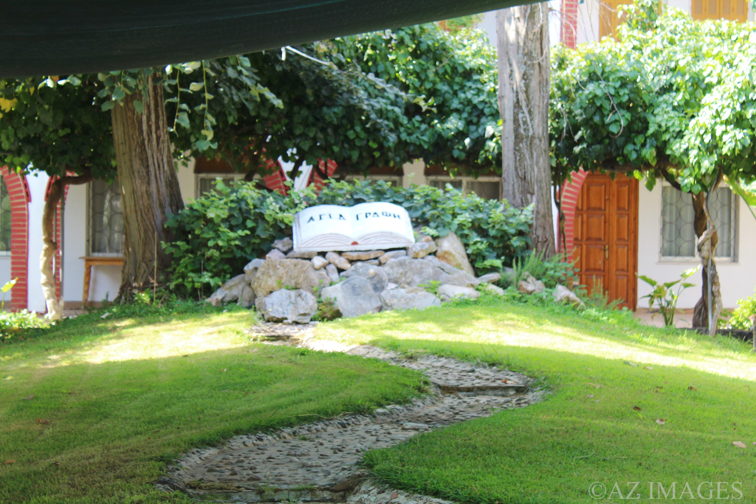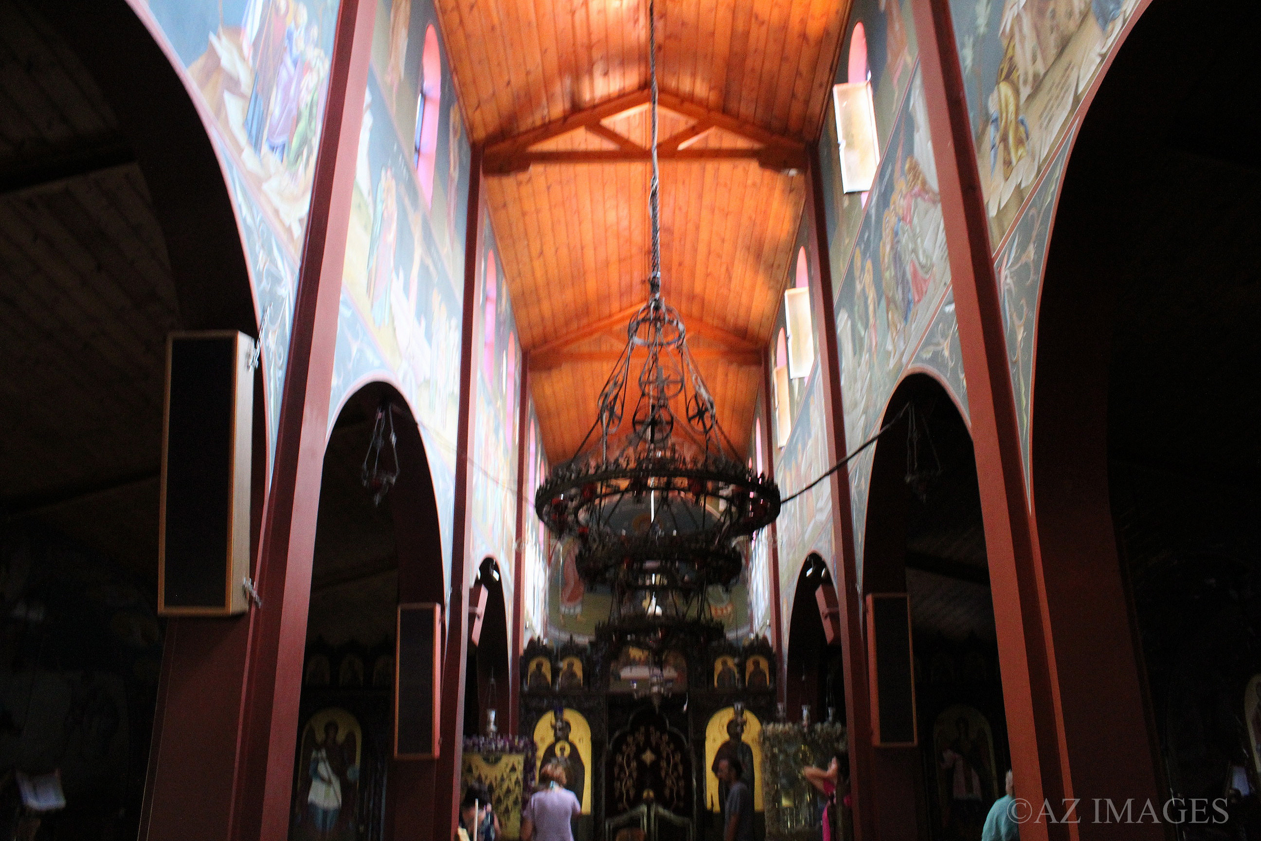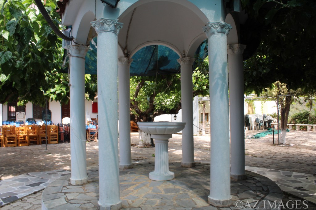 The Holy Monastery of Metamorphosis Sotiros is located on a hill overlooking the picturesque town of Naupaktos in the west of Greece. It is a relatively new monastery that was founded in 1977. The monastery is home to monks, one of which gave us a tour of the monastery. There is a huge conference room, a big library in the basement with books donated by the people, as well as ancient artifacts some replicated and others authentic. There is a beautiful courtyard with birds, and a fish pond and lots of green foliage. There is a smaller church on site called ‘Agios Spridon’. The monks are known for their philanthropic work and do not sell anything on the site aside from their locally made honey.