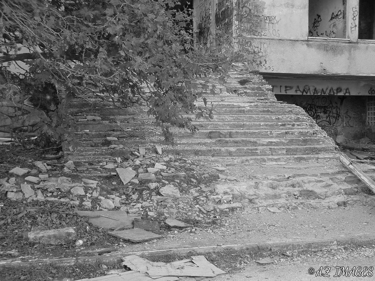Rubble of steps to the front entrance