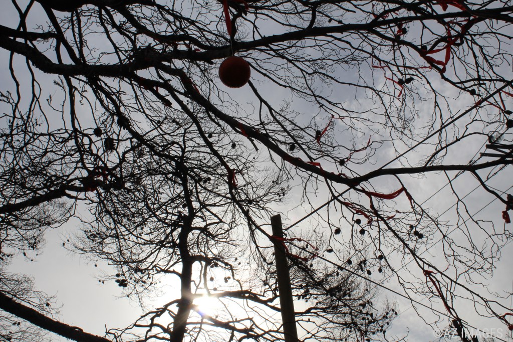 My guess is that someone who probably lives in the area wanted to bring a little colour and joy by decorated the tree with Christmas decorations to mask ‘uplift’ the bleak surroundings.