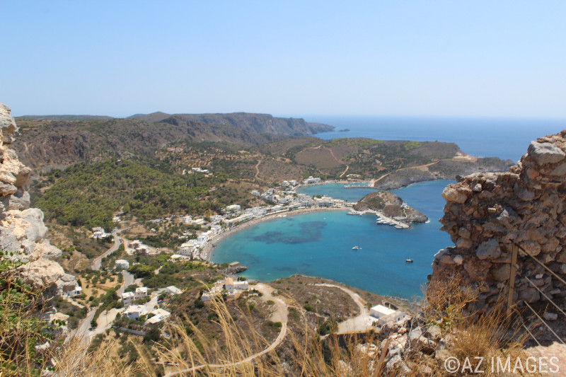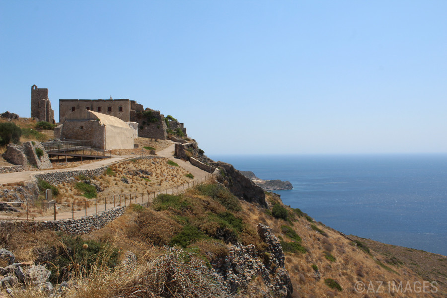 On the island of Kythira is a town called Chora where the remains of a Byzantine fortress lie. The fortress dates back to the 12th century. It is at a strategic location on a cliff 200 meters above sea level with breathtaking views of the Ionian, Aegean and Cretan seas.