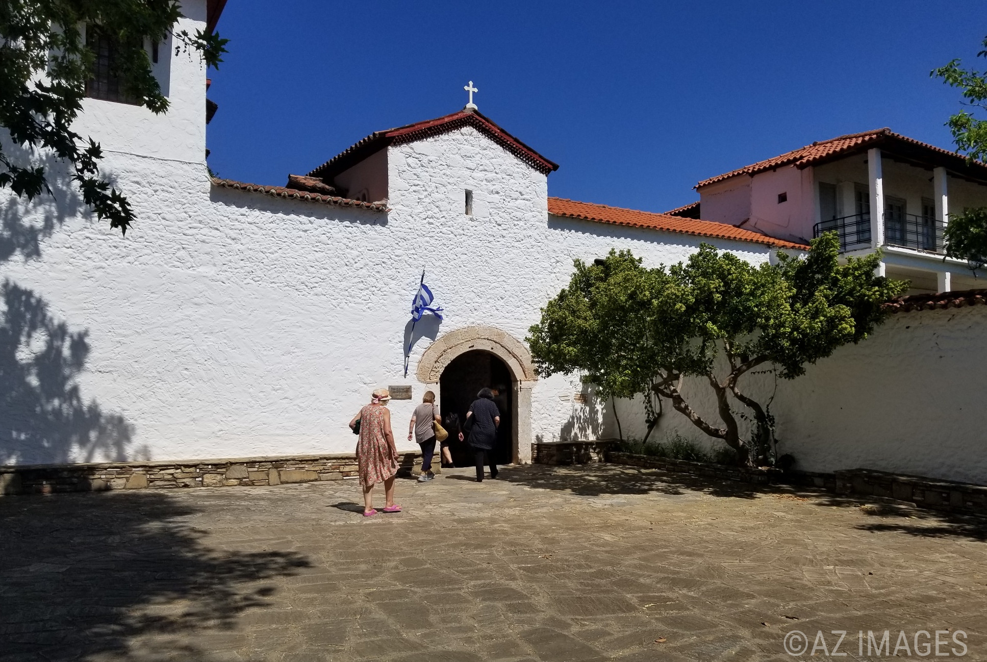 Loukous Monastery is located in Arcadia, and it is 4 km before Astros beach. It is open and friendly to the public. The nuns were the friendliest I had every come across at a monastery- including the elderly priest. The nuns were eager to discuss the history of the monastery to the guests and they gave us Holy Water. I packet a long skirt, but I didn’t need to change as I was wearing shorts. I was never told to change or given ‘the look’.